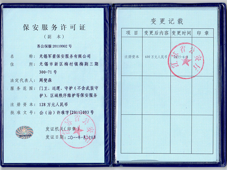 江蘇軍豪保安服務(wù)有限公司安徽分公司